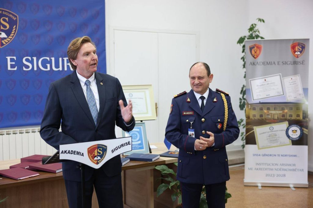 Drejtori i Përgjithshëm i Policisë së Shtetit, gjatë fjalës së tij, e cilësoi këtë akreditim si një dëshmi konkrete e përkushtimit për standarde ndërkombëtare dhe cilësi në formimin profesional të punonjësve të Policisë. “Ky sukses nuk do të ishte i mundur pa bashkëpunimin e ngushtë me partnerët tanë ndërkombëtarë, veçanërisht ICITAP dhe IADLEST”, u shpreh ai, duke theksuar rolin vendimtar që kanë luajtur këto institucione në modernizimin e kurrikulave dhe në rritjen e cilësisë së arsimit policor.